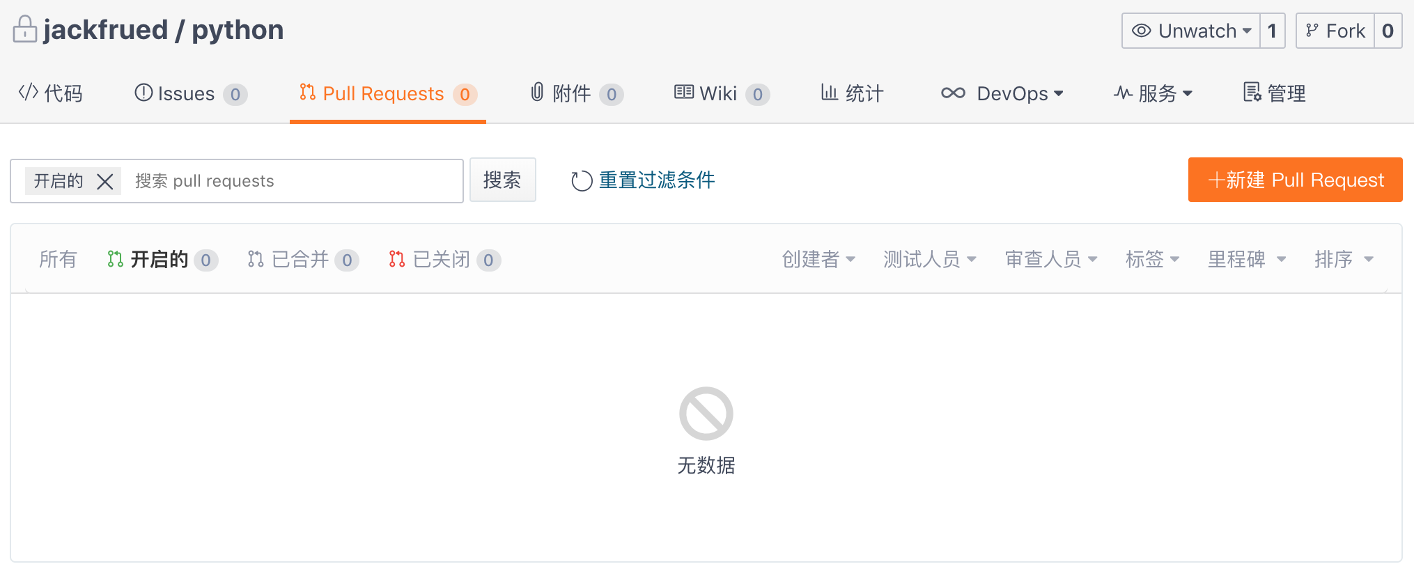 既然Git是团队开发必备的工具,那么在团队协作时就必须有一个规范的工作流程,这样才能让团队高效的工作,让项目顺利的进展下去,否则工具再厉害但团队成员各自为战,冲突就会无处不在,协作更加无从谈起。我们仍然以刚才码云上创建的python项目为例,来说明Git的分支管理策略。